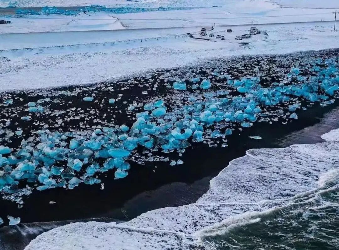 #瓦特纳冰川冰河湖 万年冰川融入入海口的极致震撼,坐橡皮艇近距离靠近冰川,有种置身于南极的错觉。 在冰河湖不远处,有这样一片黑沙滩,布满了大大小小的“钻石”,闪烁着耀眼的光芒,这里就是钻石沙滩。因为连接着冰河湖与入海口,冰块漂浮进大海,又被海浪推回搁浅在黑色的沙滩上,形成一颗颗闪烁着光芒的钻石。晶莹如钻石的冰和黝黑的沙子相映形成不可思议的空灵景象,科幻电影里才会出现这样的画面。